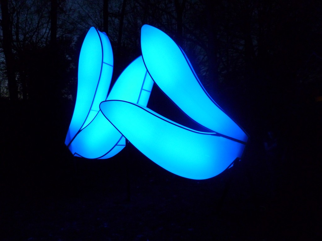 The dragonfly-wing sculpture seen here, which was on display at the Smithsonian’s National Zoo in Washington DC from March 24- June 10, 2012, is one of many such “love motels” that Ballengée has built. According to the artist, ” Love Motel for Insects is an ongoing series of outdoor installations intended to construct situations between humans and arthropods. The works use ultra-violet lights on enormous blank canvases to attract insects and create an opportunity for public interactions with rarely seen nocturnal arthropods. At each location, the Love Motels for Insects become the backdrop for community events such as picnics, biodiversity festivals, graffiti jams, scientific investigations, musical events and even local film screenings relating to local insect species.”