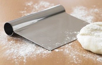 - A ridged plastic or metal tool generally used to scrape things off your table. Not unlike a putty or spackle knife.