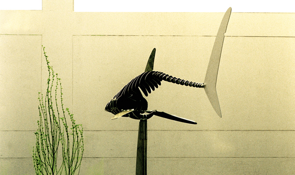 In Cape Town, South Africa, artist Ralph Borland has recently created an installation of “ghost sharks” alluding to the fact that the area was under water centuries earlier. Borland’s sharks are even more stripped-down than Veilhan’s, only skeletons with fins, but they are equipped with sensors that make them move in response to people passing by. The sight of a shark sculpture “coming to life” might entrance some onlookers, for others, it might just be enough to scare them off that square forever.