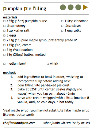 For those of you keeping score, the secrets to pumpkin pie number four: maple syrup, bourbon, lard, and vodka.