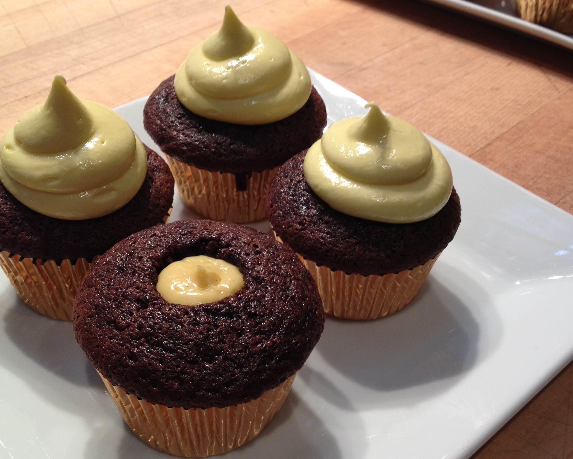 While I had fun writing all the recipes, my time as a pastry chef makes me particularly partial to desserts. Therefore, we are going to focus on our sweet selection, the Malted Devils Food Cupcakes with Passion Fruit Cream Filling and Olive Oil Buttercream – and some of the science behind its chocolatey decadence.
