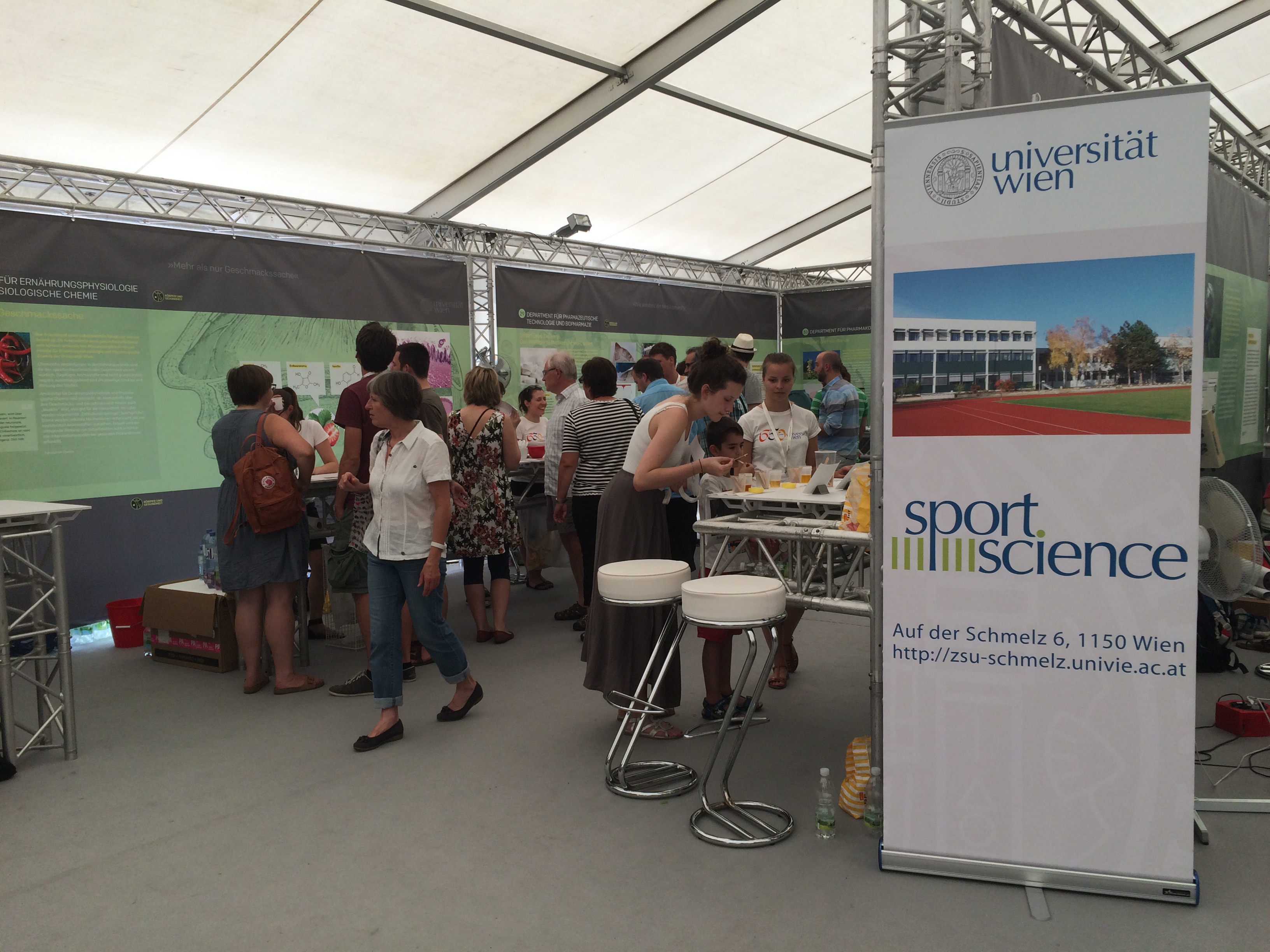 Other parts of the programme included some public lectures, and a “music and science stage”, which included some Austrian science cabaret groups. Here the stage is being set up for Science Busters.