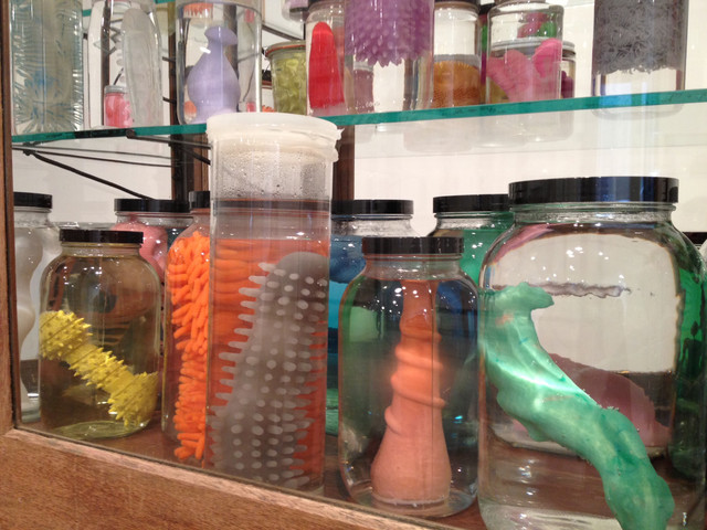 Andy Warhol famously said that “Art is what you can get away with.” It seems a good definition for this sculpture by renowned American artist Mark Dion. The piece, Marine Invertebrates, is made up of dog toys and sex toys displayed in specimen bottles, as if in an old-fashioned natural history museum.
