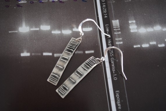 Silver earrings by NBDesigns depict DNA ladders, solutions of DNA molecules of different lengths used in gel electrophoresis. A great gift for a geneticist, of course, but also for that special someone who has cracked your code.